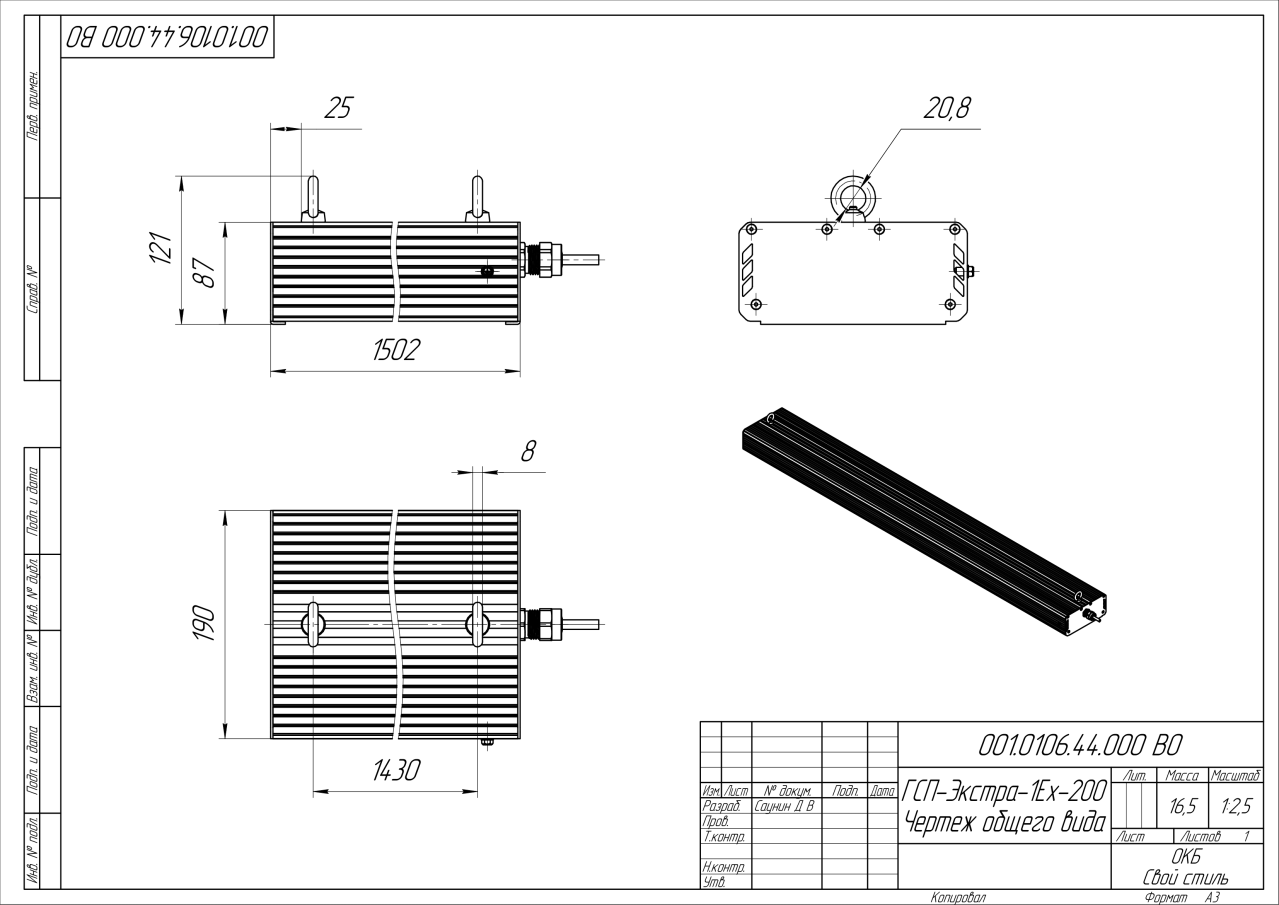 | Габаритные размеры (ДxШxВ), мм | 1502x190x87 |