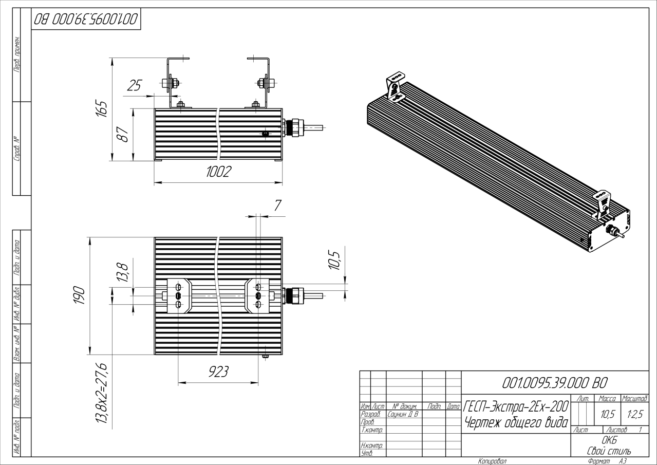| Габаритные размеры (ДxШxВ), мм | 1002x190x87 |