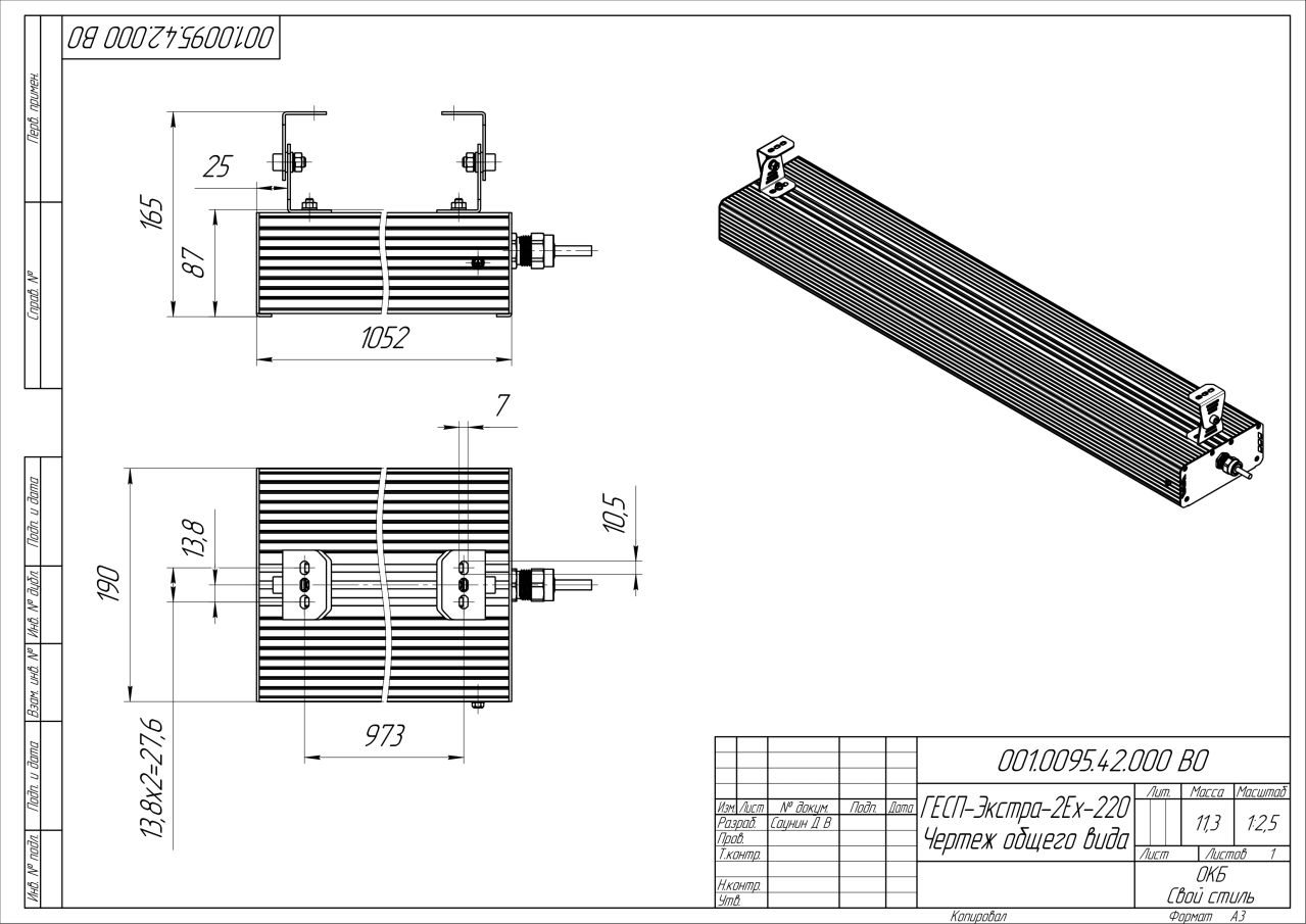 | Габаритные размеры (ДxШxВ), мм | 1052x190x87 |