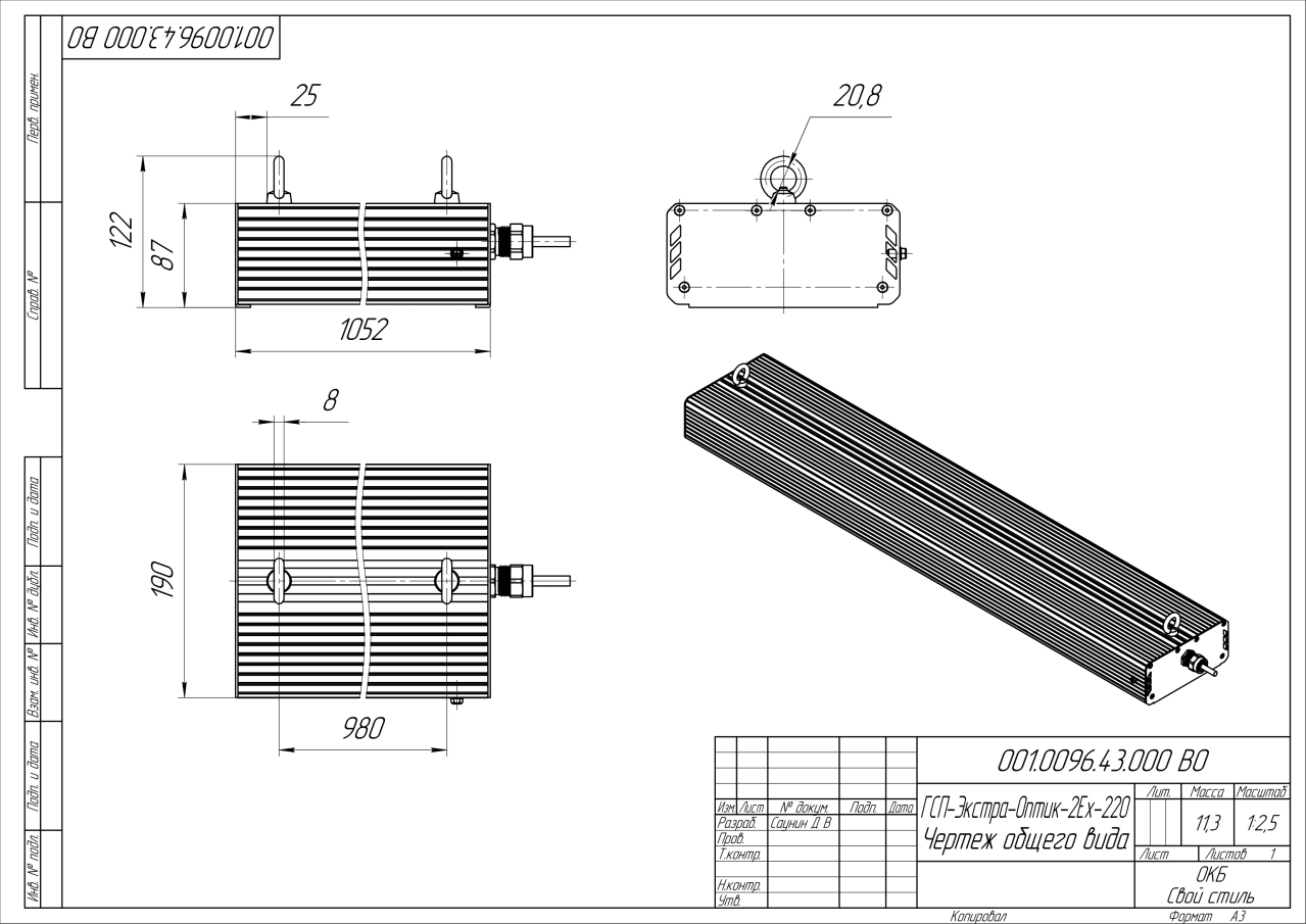 | Габаритные размеры (ДxШxВ), мм | 1052x190x87 |