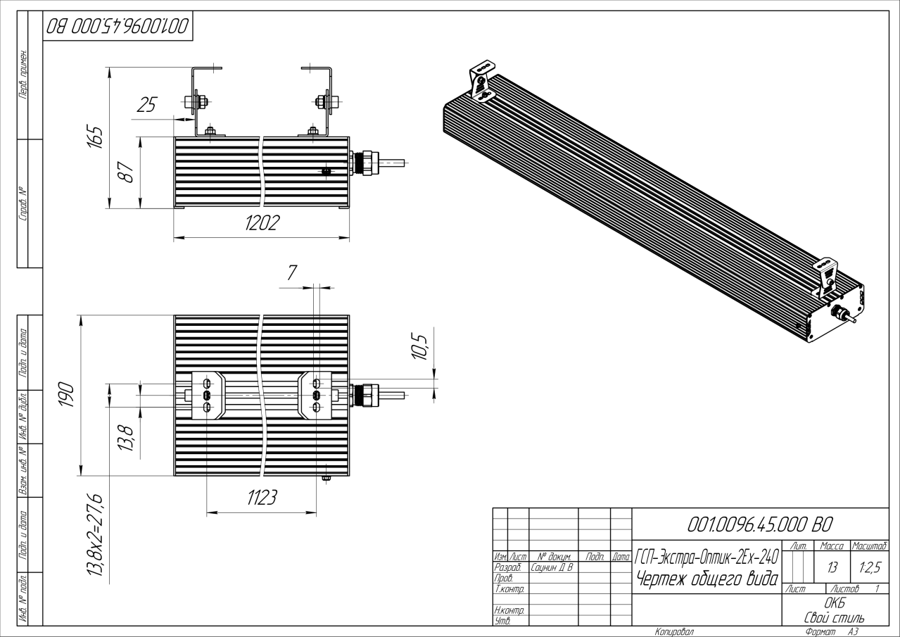 | Габаритные размеры (ДxШxВ), мм | 1202x190x87 |
