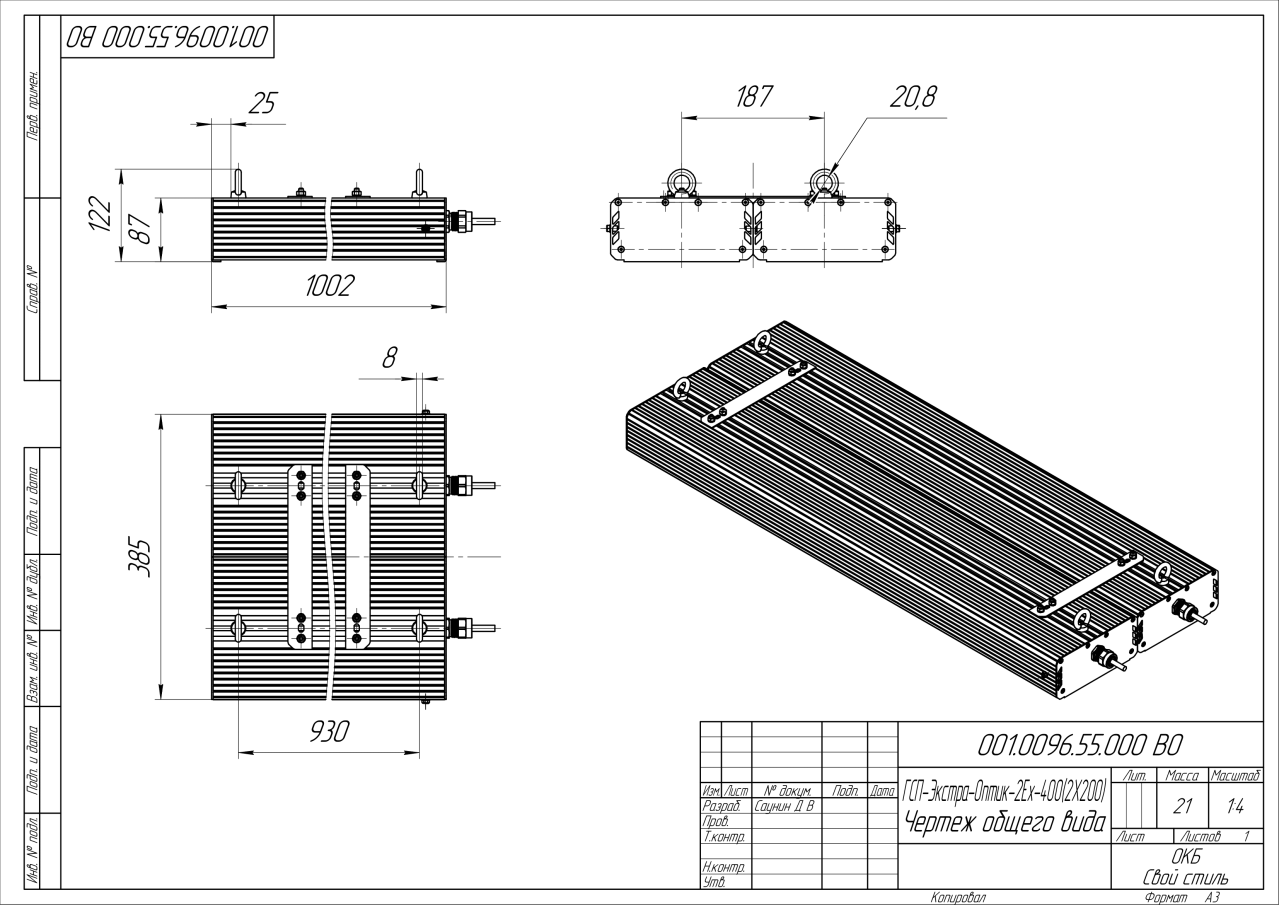 | Габаритные размеры (ДxШxВ), мм | 1002x385x87 |