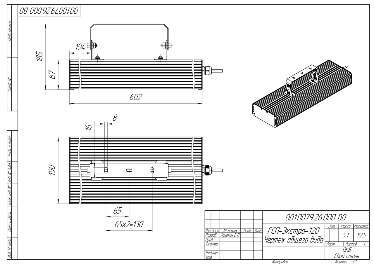 | Габаритные размеры (ДxШxВ), мм | 602x190x87 |