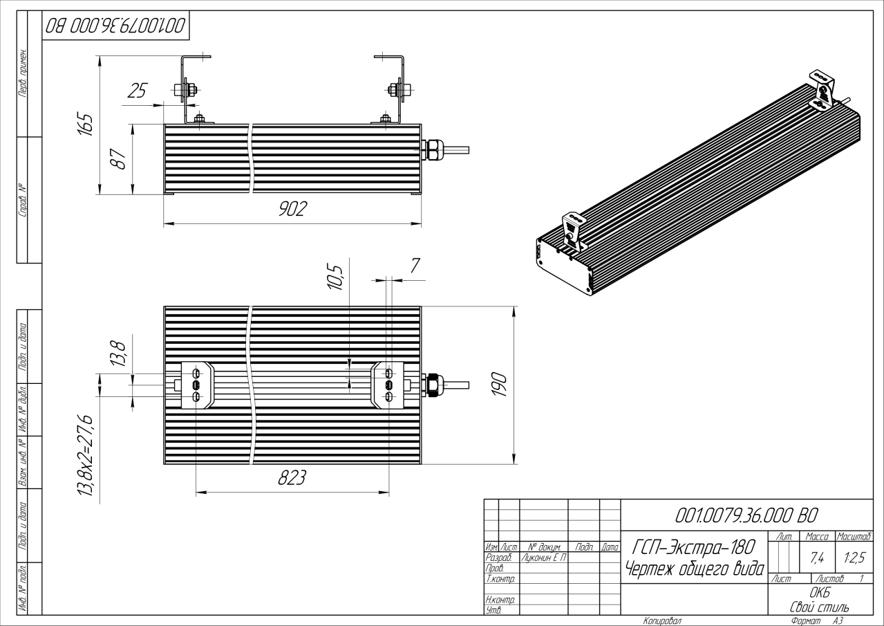 | Габаритные размеры (ДxШxВ), мм | 902x190x87 |