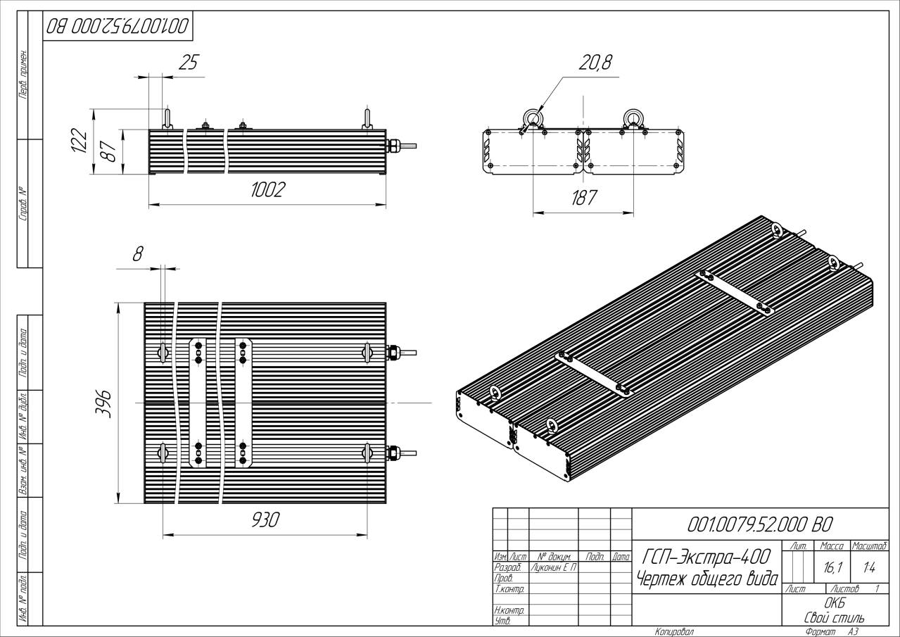 | Габаритные размеры (ДxШxВ), мм | 1002x396x87 |