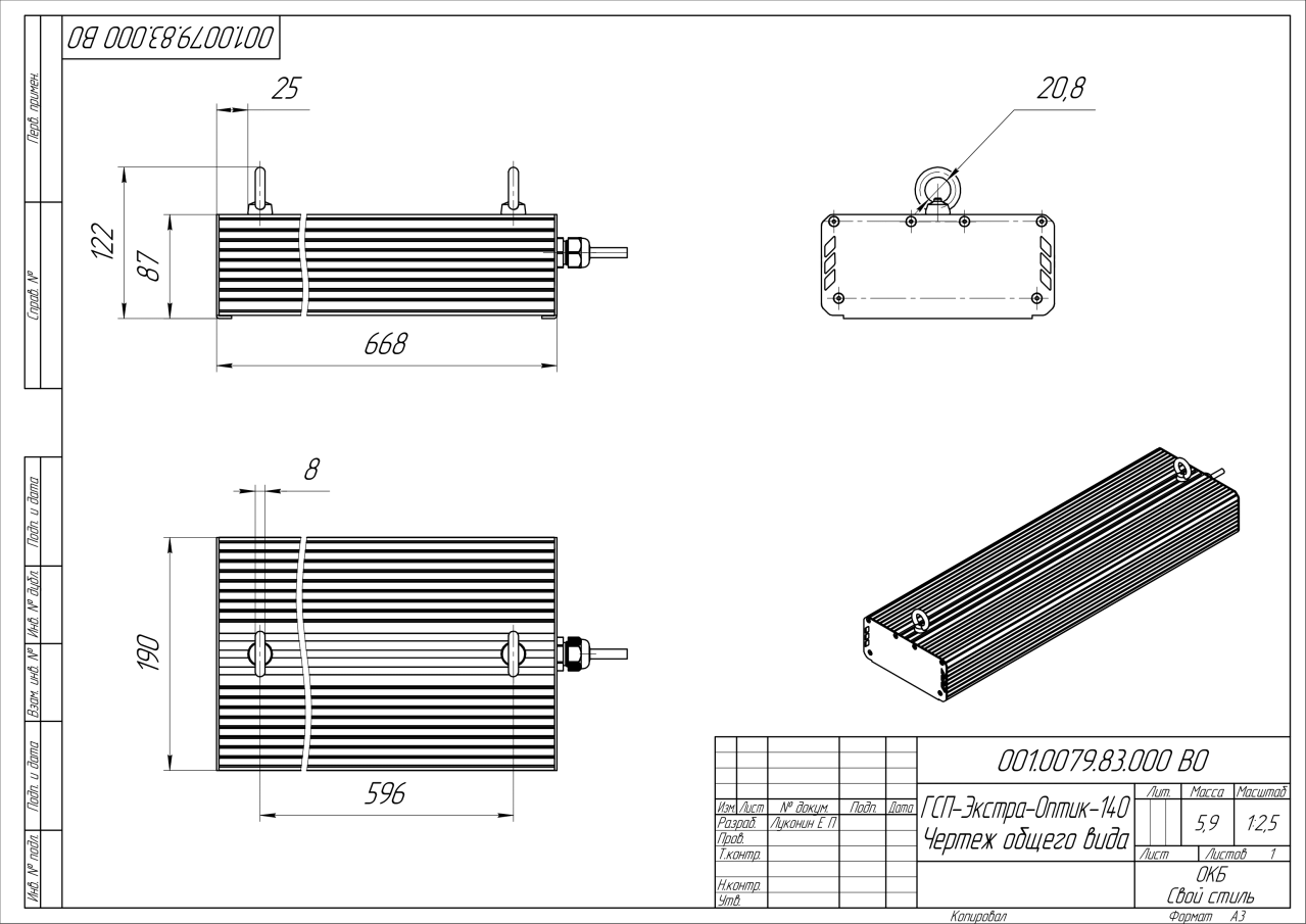 | Габаритные размеры (ДxШxВ), мм | 668x190x87 |