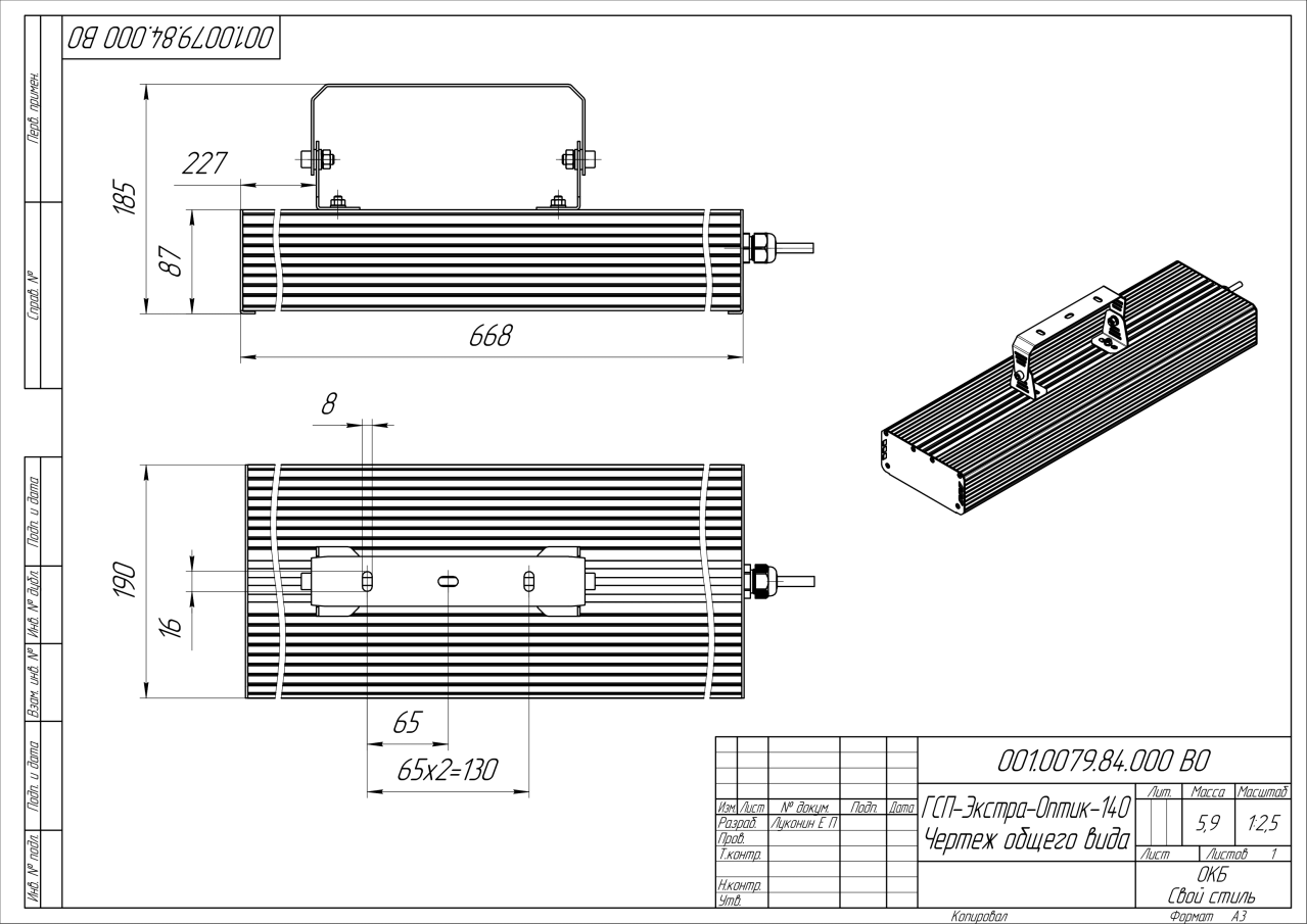 | Габаритные размеры (ДxШxВ), мм | 668x190x87 |