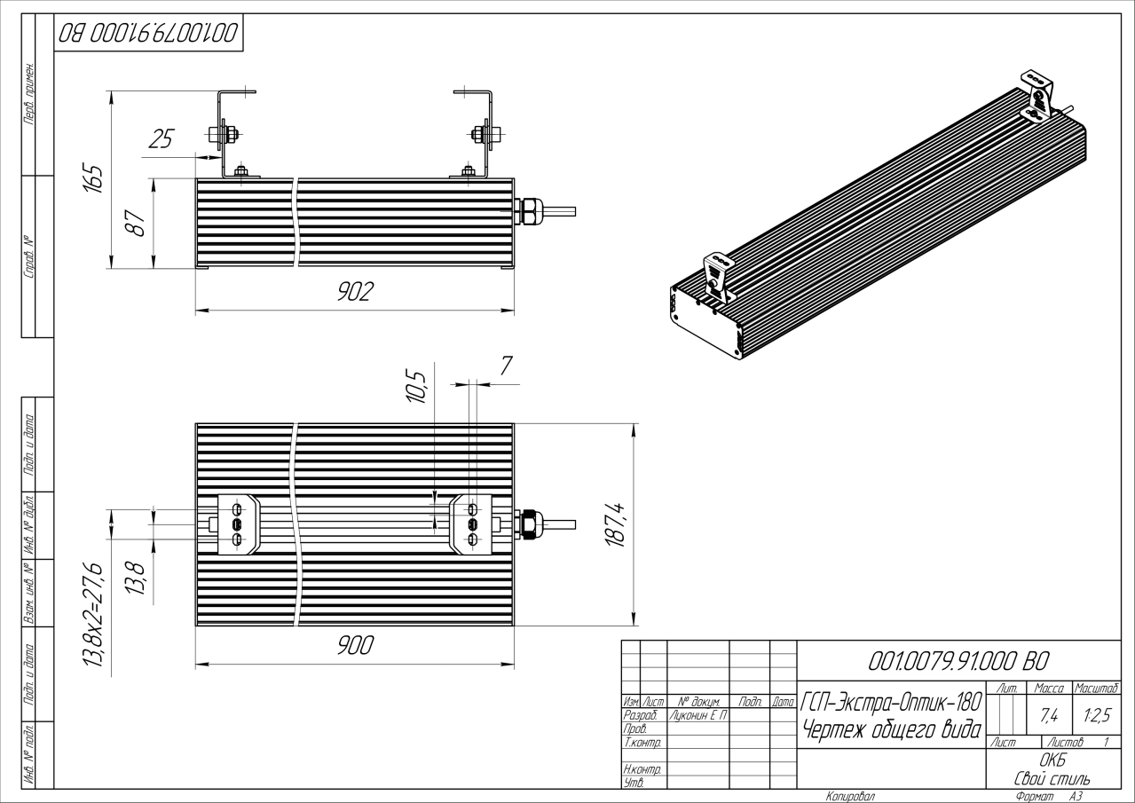 | Габаритные размеры (ДxШxВ), мм | 902x190x87 |