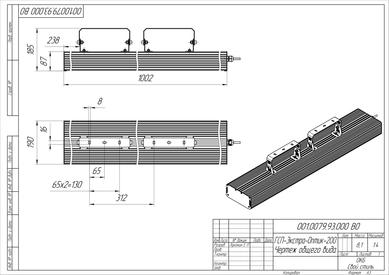 | Габаритные размеры (ДxШxВ), мм | 1002x190x87 |