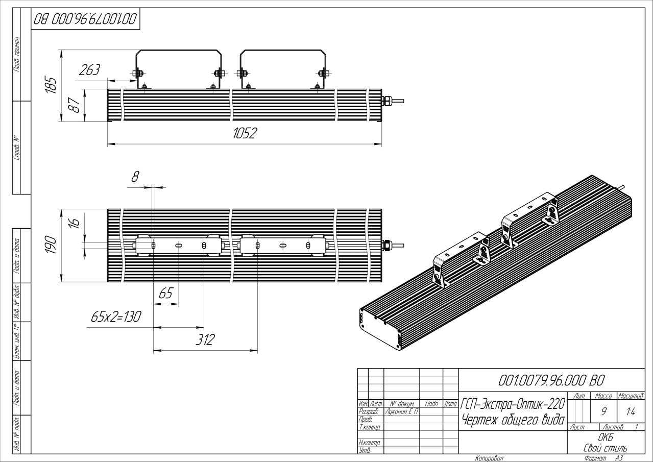 | Габаритные размеры (ДxШxВ), мм | 1052x190x87 |