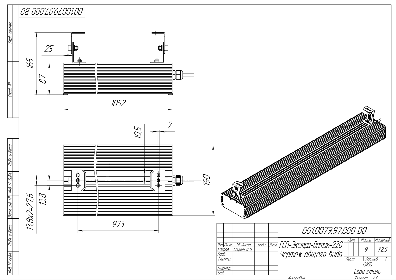| Габаритные размеры (ДxШxВ), мм | 1052x190x87 |