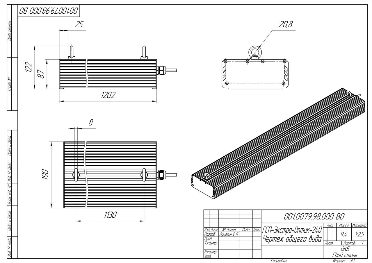 | Габаритные размеры (ДxШxВ), мм | 1202x190x87 |