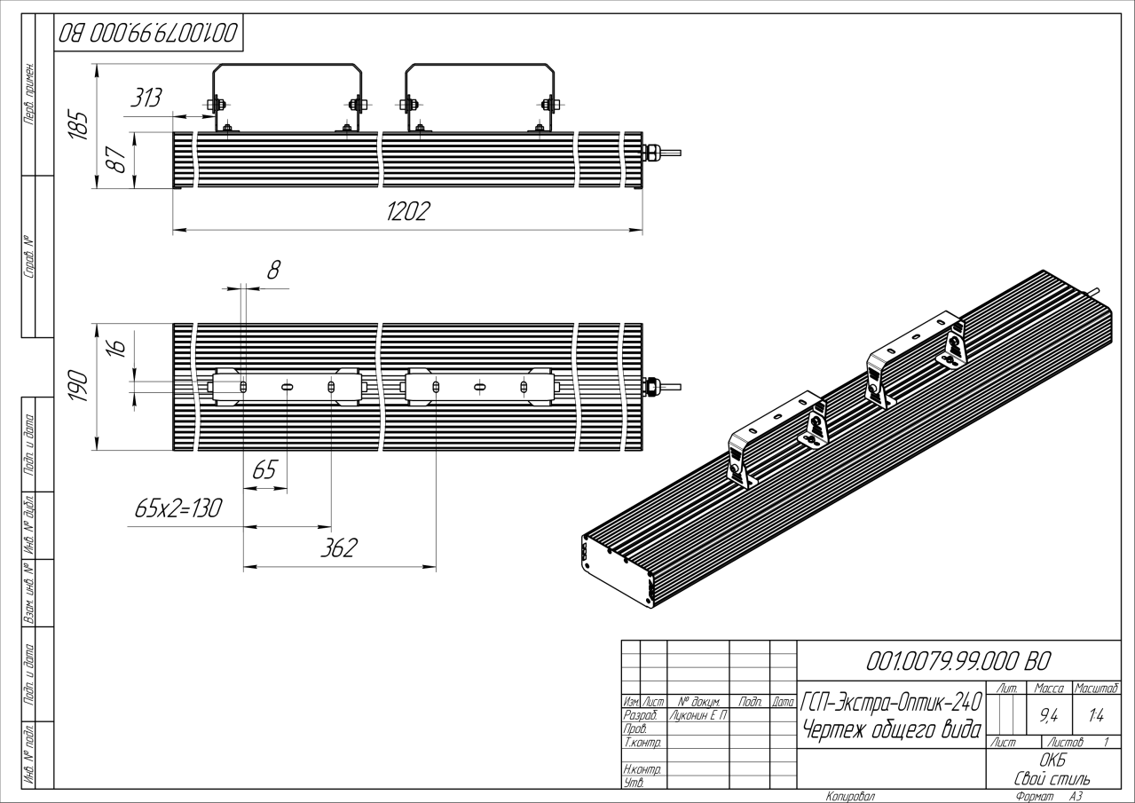 | Габаритные размеры (ДxШxВ), мм | 1202x190x87 |