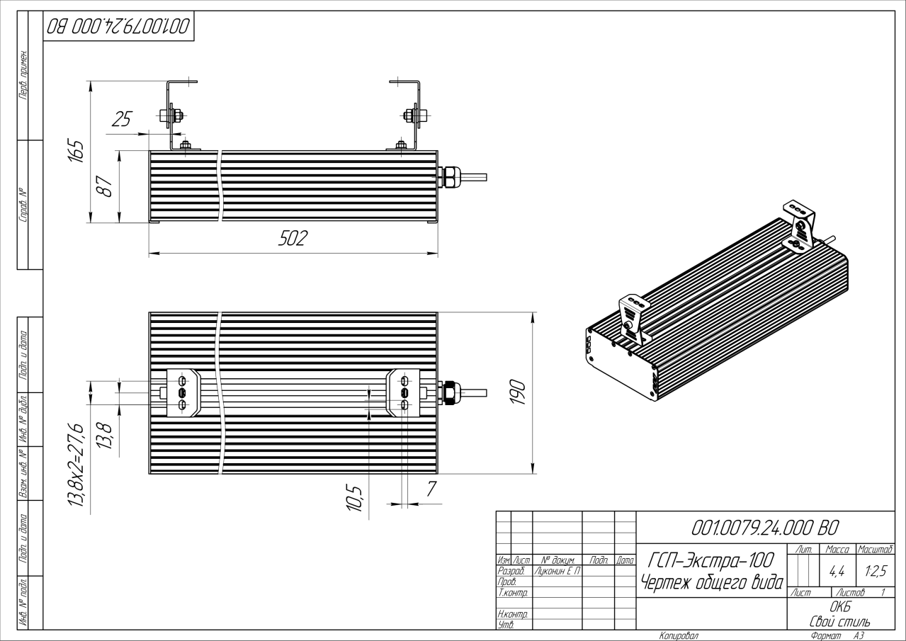 | Габаритные размеры (ДxШxВ), мм | 502x190x87 |