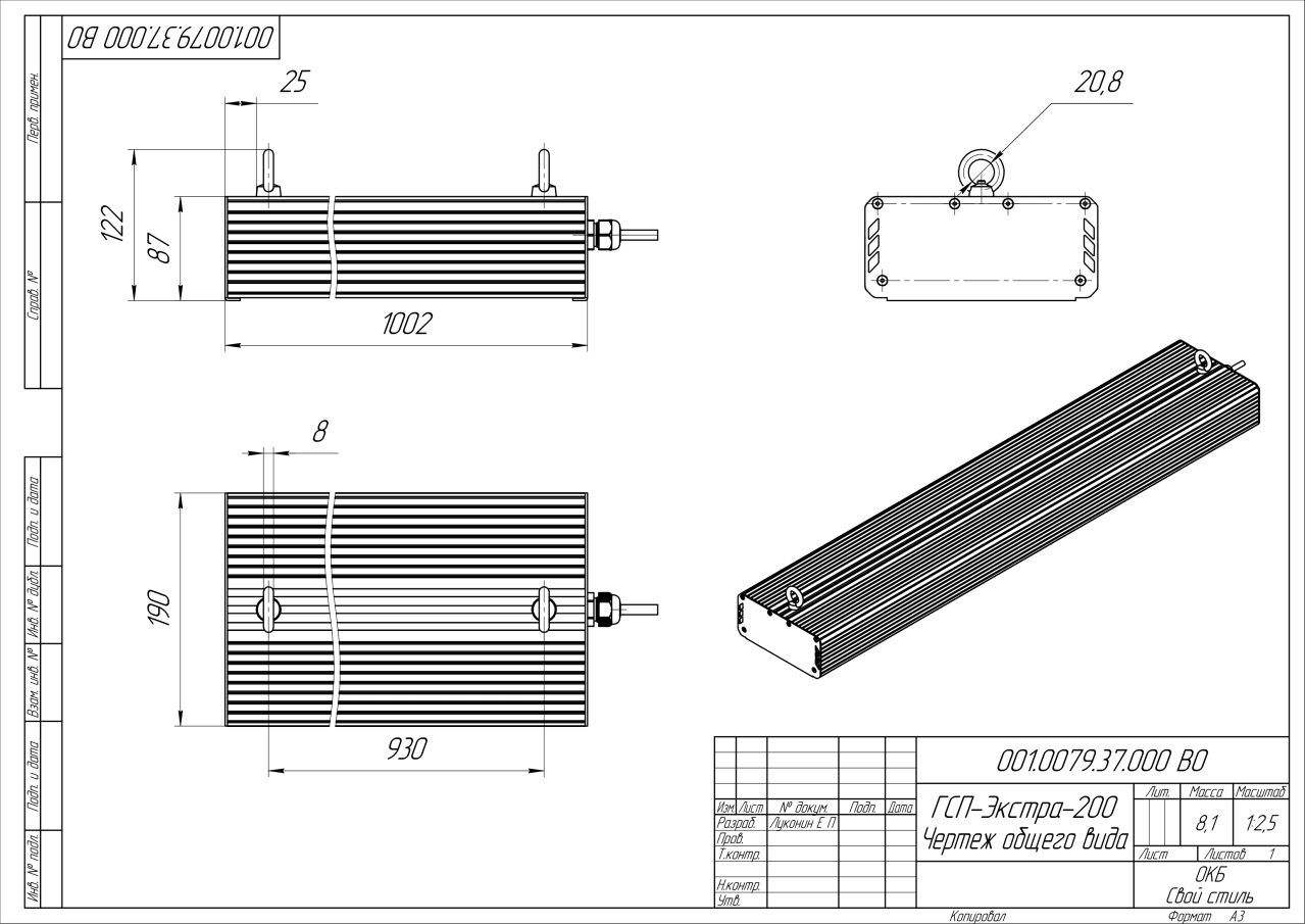 | Габаритные размеры (ДxШxВ), мм | 1002x190x87 |