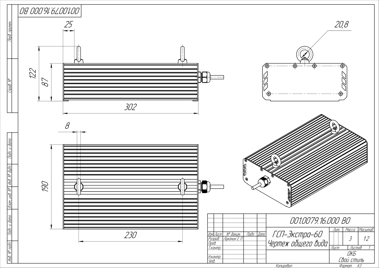 | Габаритные размеры (ДxШxВ), мм | 302x190x87 |
