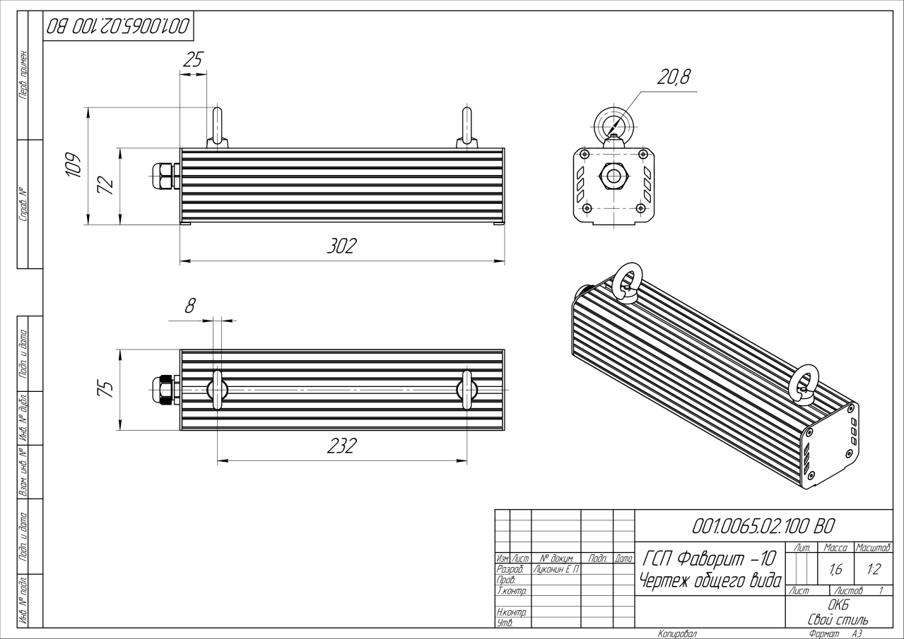 | Габаритные размеры (ДxШxВ), мм | 302x75x72 |