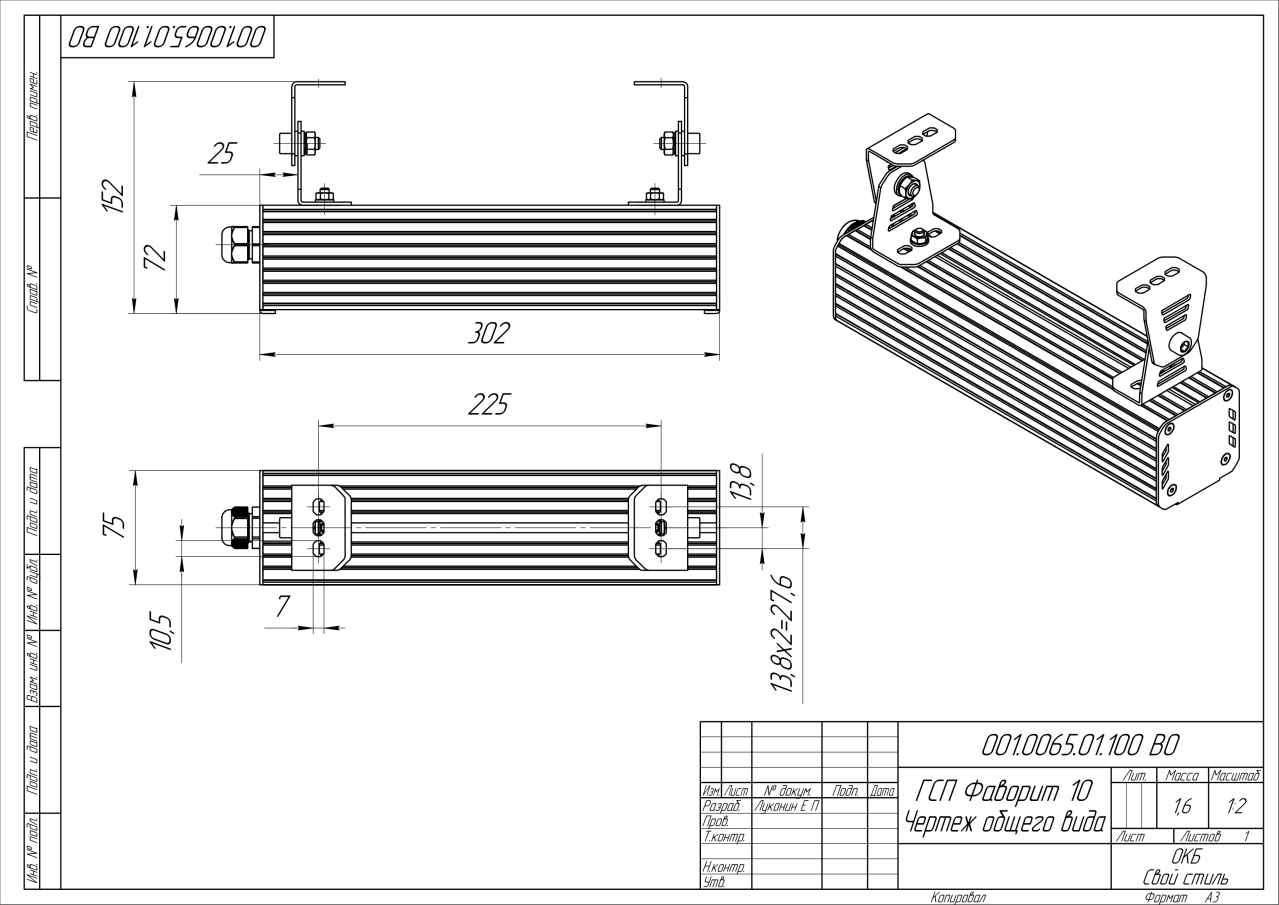 | Габаритные размеры (ДxШxВ), мм | 302x75x72 |