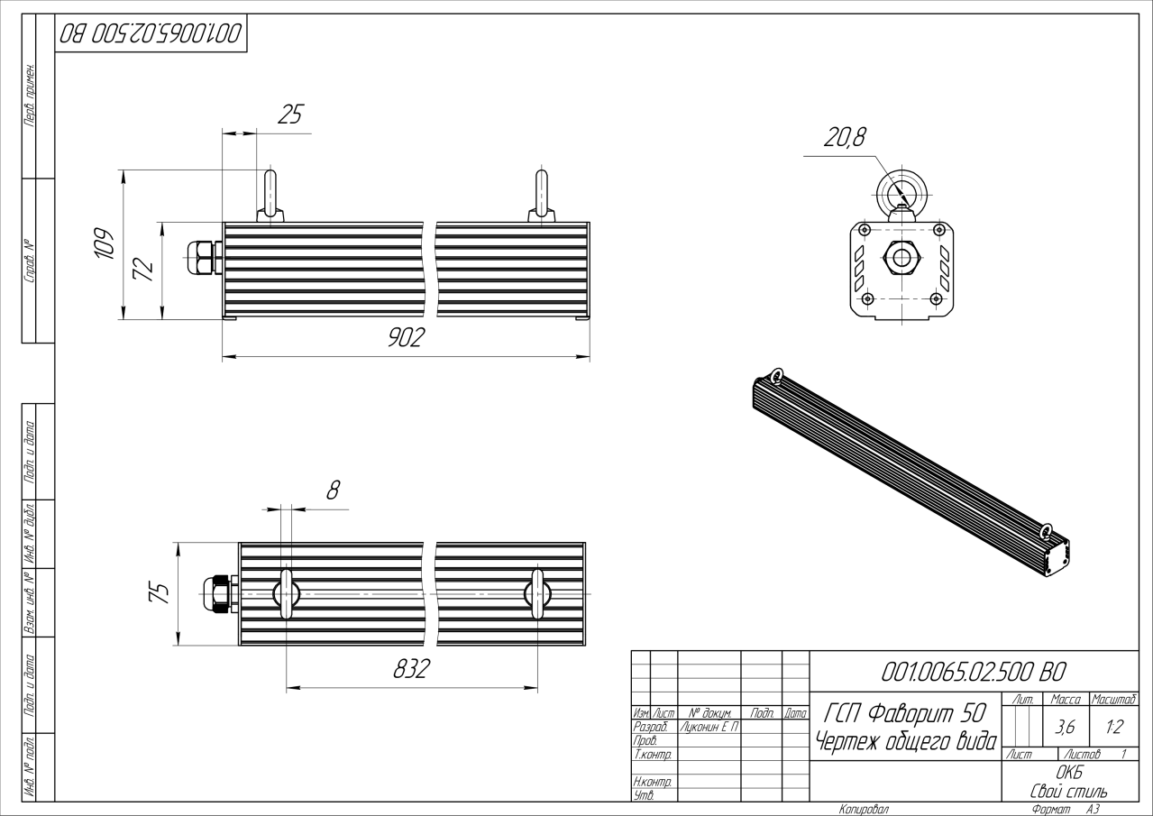 | Габаритные размеры (ДxШxВ), мм | 902x75x72 |
