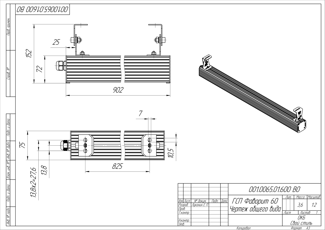 | Габаритные размеры (ДxШxВ), мм | 902x75x72 |