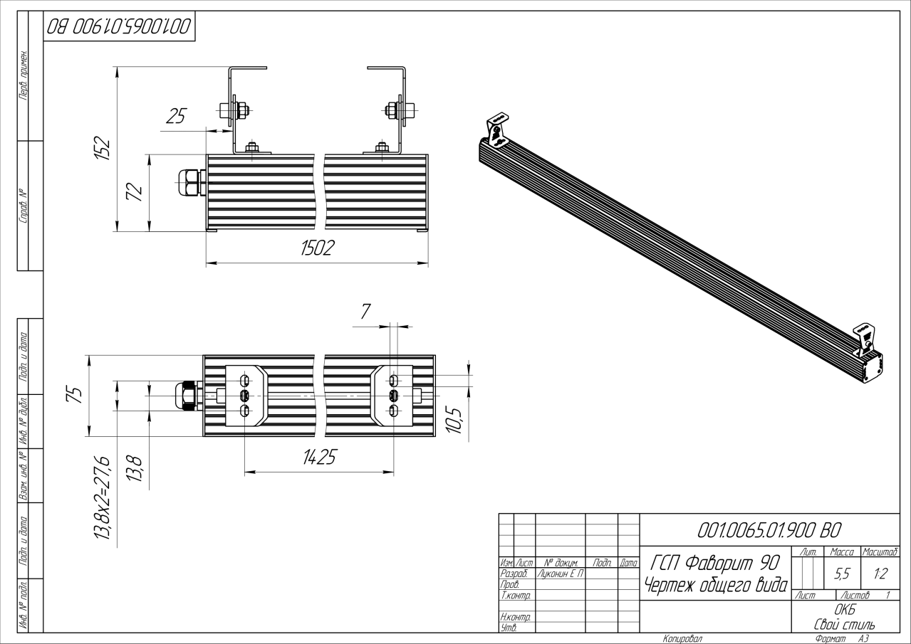 | Габаритные размеры (ДxШxВ), мм | 1502x75x72 |