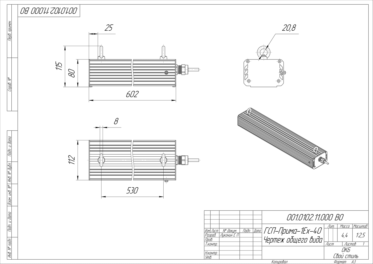 | Габаритные размеры (ДxШxВ), мм | 602x112x80 |
