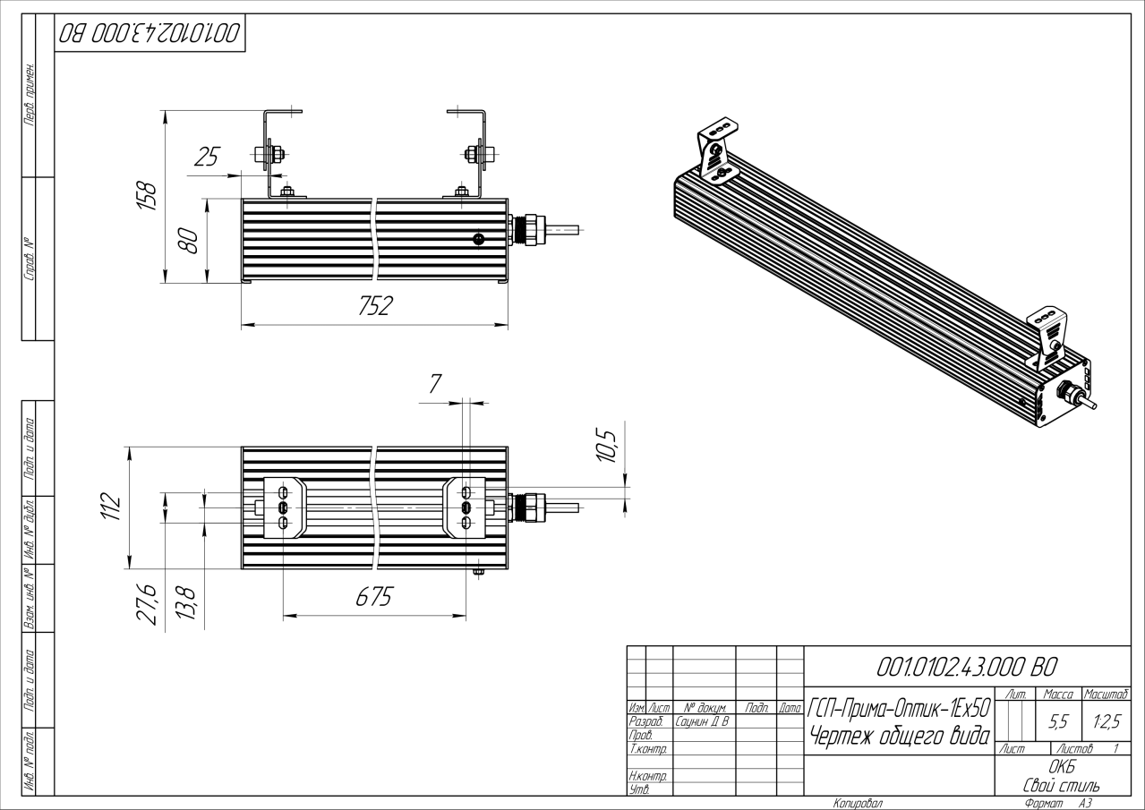 | Габаритные размеры (ДxШxВ), мм | 752x112x80 |