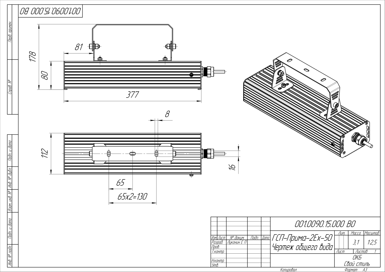 | Габаритные размеры (ДxШxВ), мм | 377x112x80 |