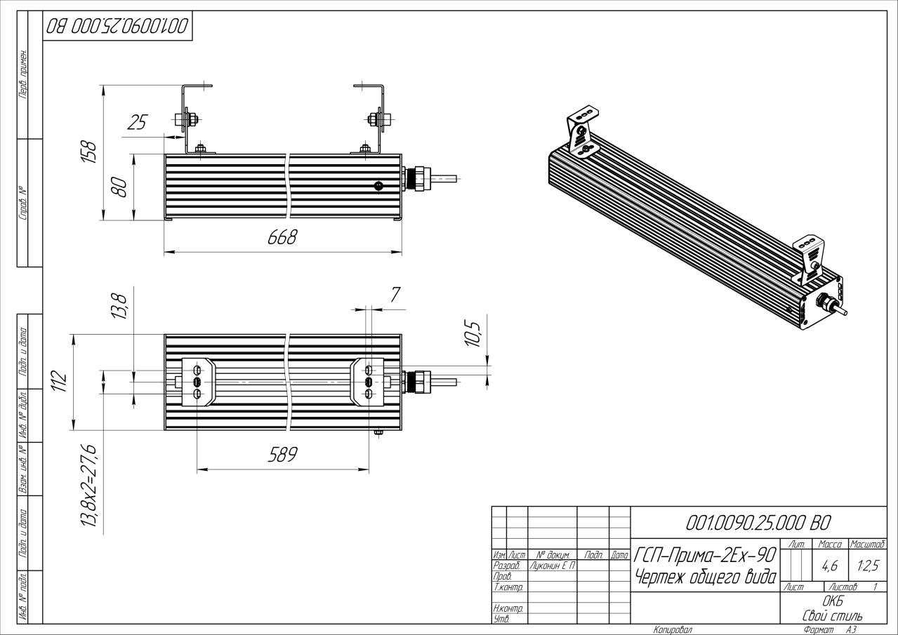 | Габаритные размеры (ДxШxВ), мм | 668x112x80 |