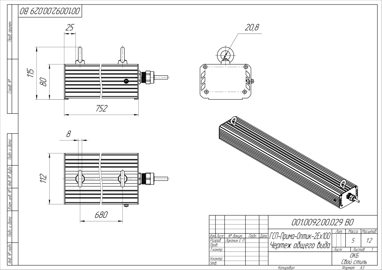 | Габаритные размеры (ДxШxВ), мм | 752x112x80 |