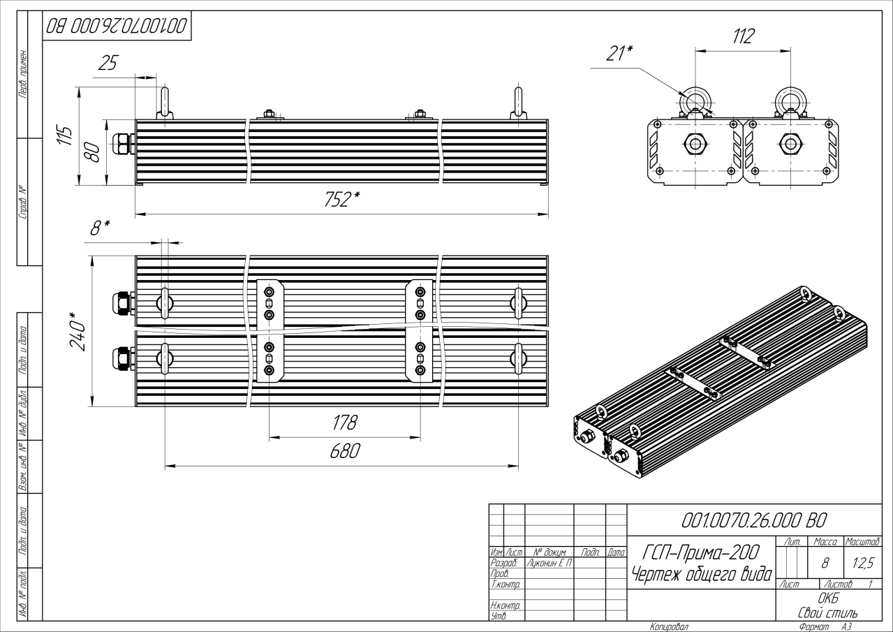 | Габаритные размеры (ДxШxВ), мм | 752x240x80 |