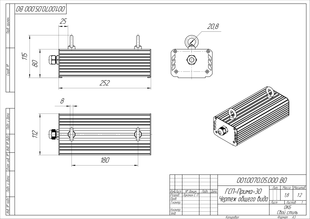 | Габаритные размеры (ДxШxВ), мм | 252x112x80 |