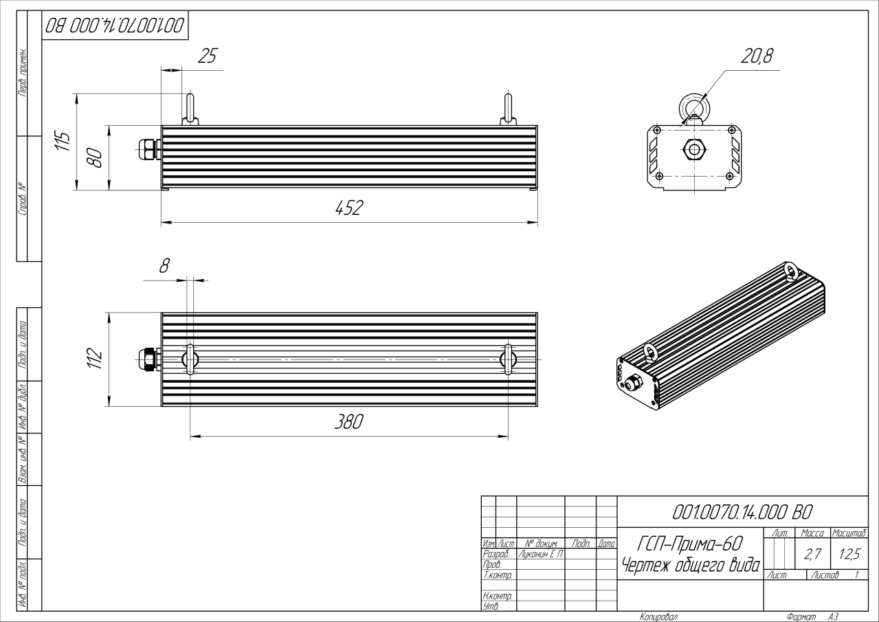 | Габаритные размеры (ДxШxВ), мм | 452x112x80 |