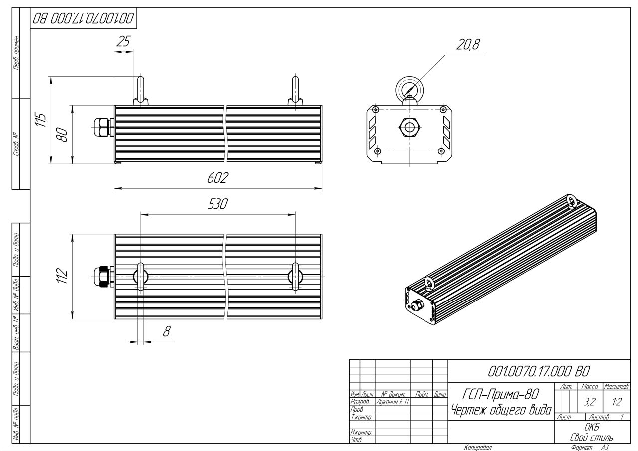 | Габаритные размеры (ДxШxВ), мм | 602x112x80 |