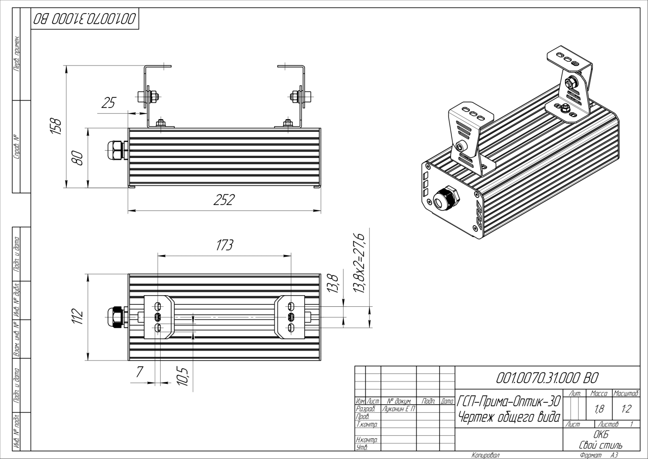 | Габаритные размеры (ДxШxВ), мм | 252x112x80 |