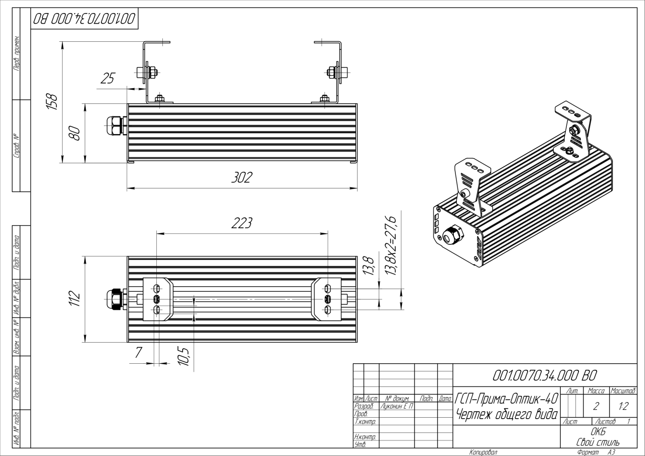 | Габаритные размеры (ДxШxВ), мм | 302x112x80 |