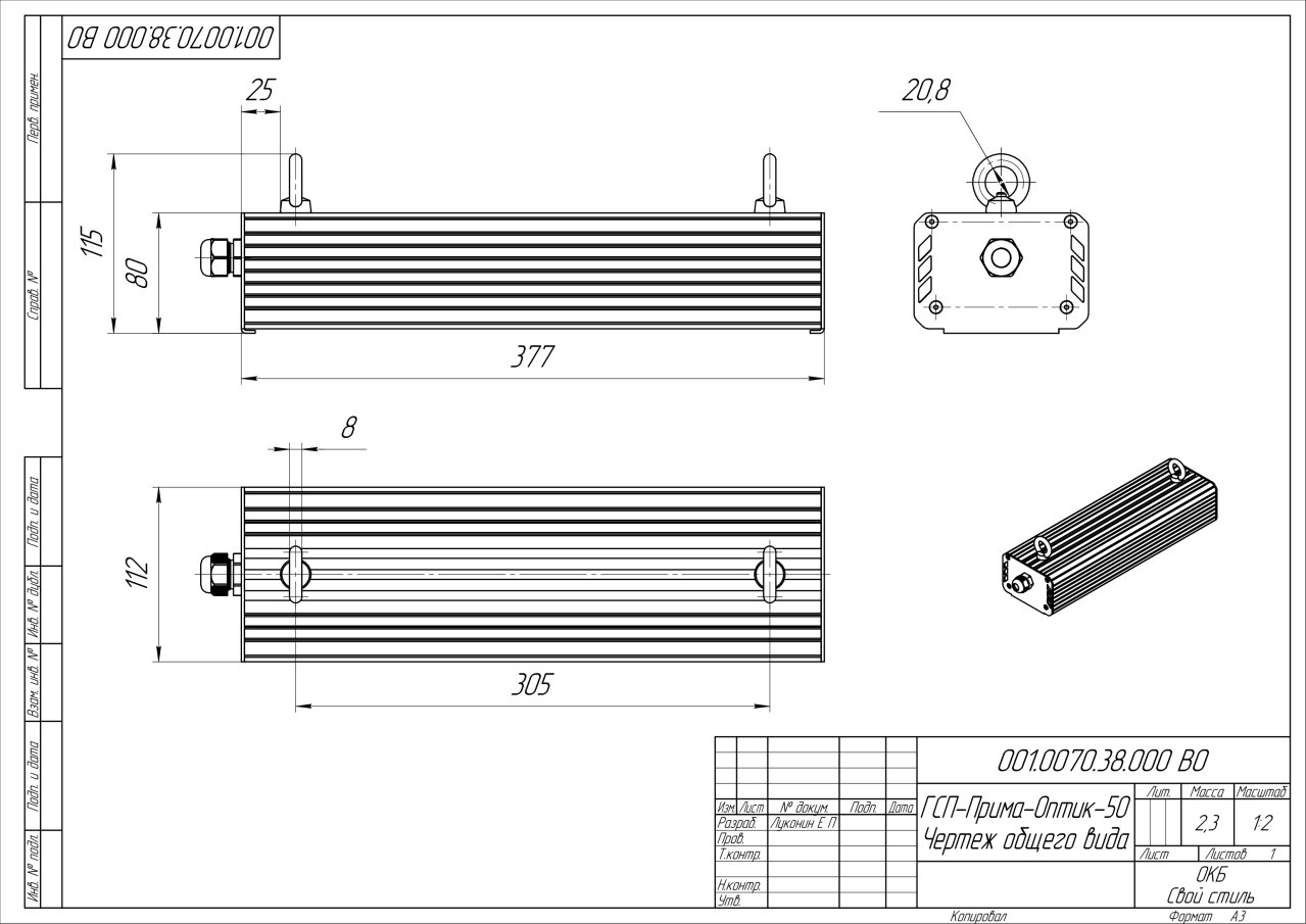 | Габаритные размеры (ДxШxВ), мм | 377x112x80 |