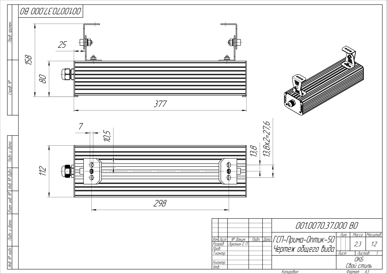| Габаритные размеры (ДxШxВ), мм | 377x112x80 |