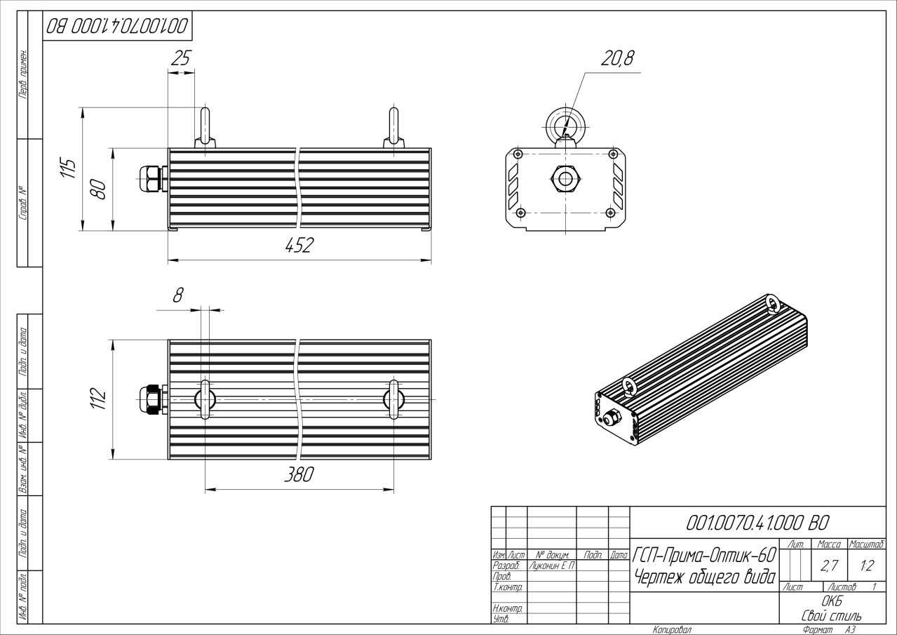 | Габаритные размеры (ДxШxВ), мм | 452x112x80 |