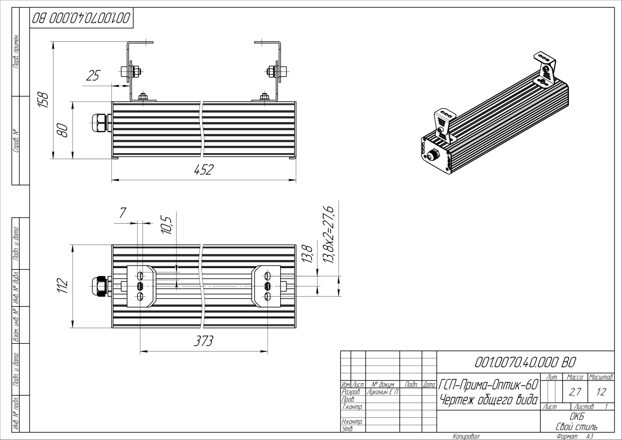 | Габаритные размеры (ДxШxВ), мм | 452x112x80 |