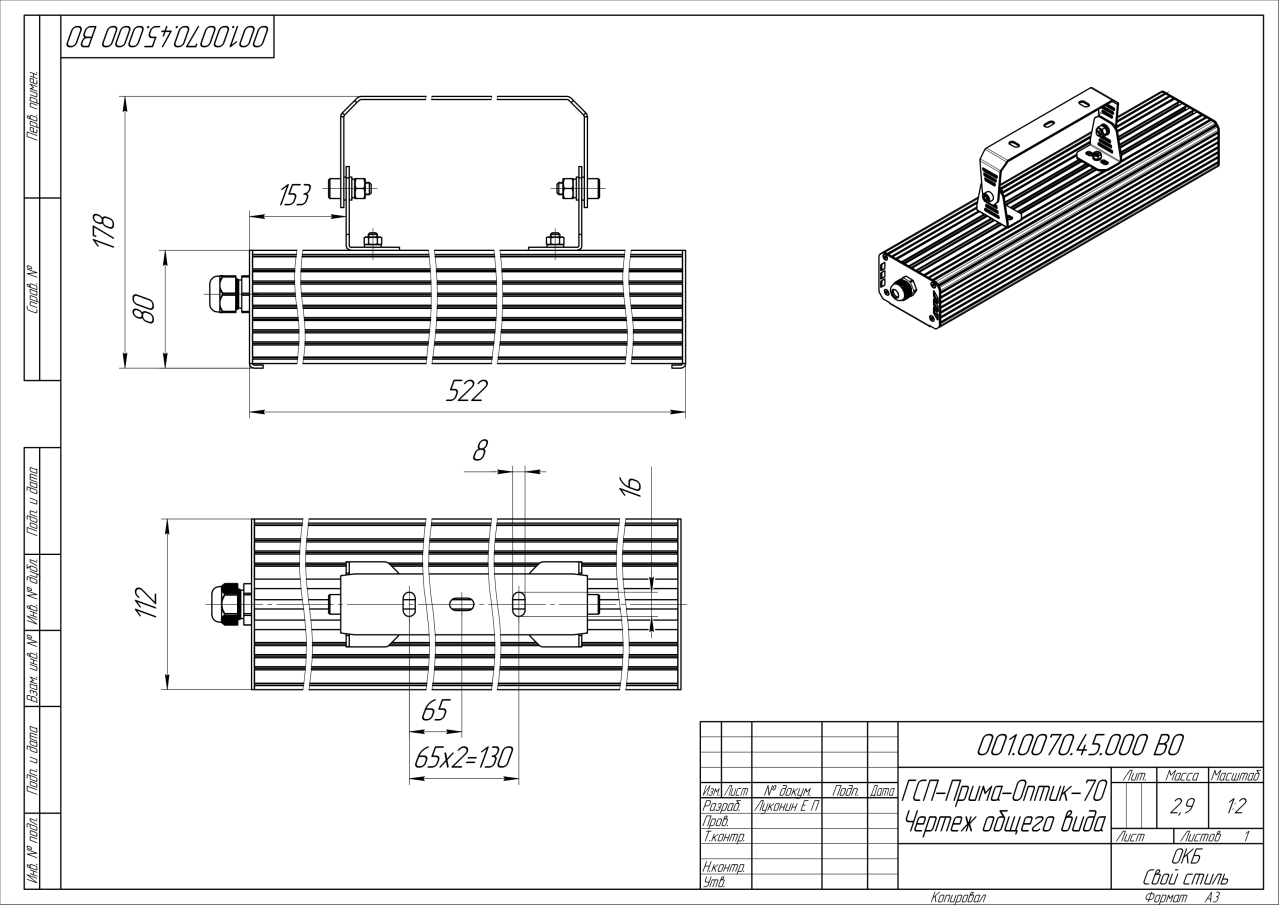 | Габаритные размеры (ДxШxВ), мм | 522х112х80 |