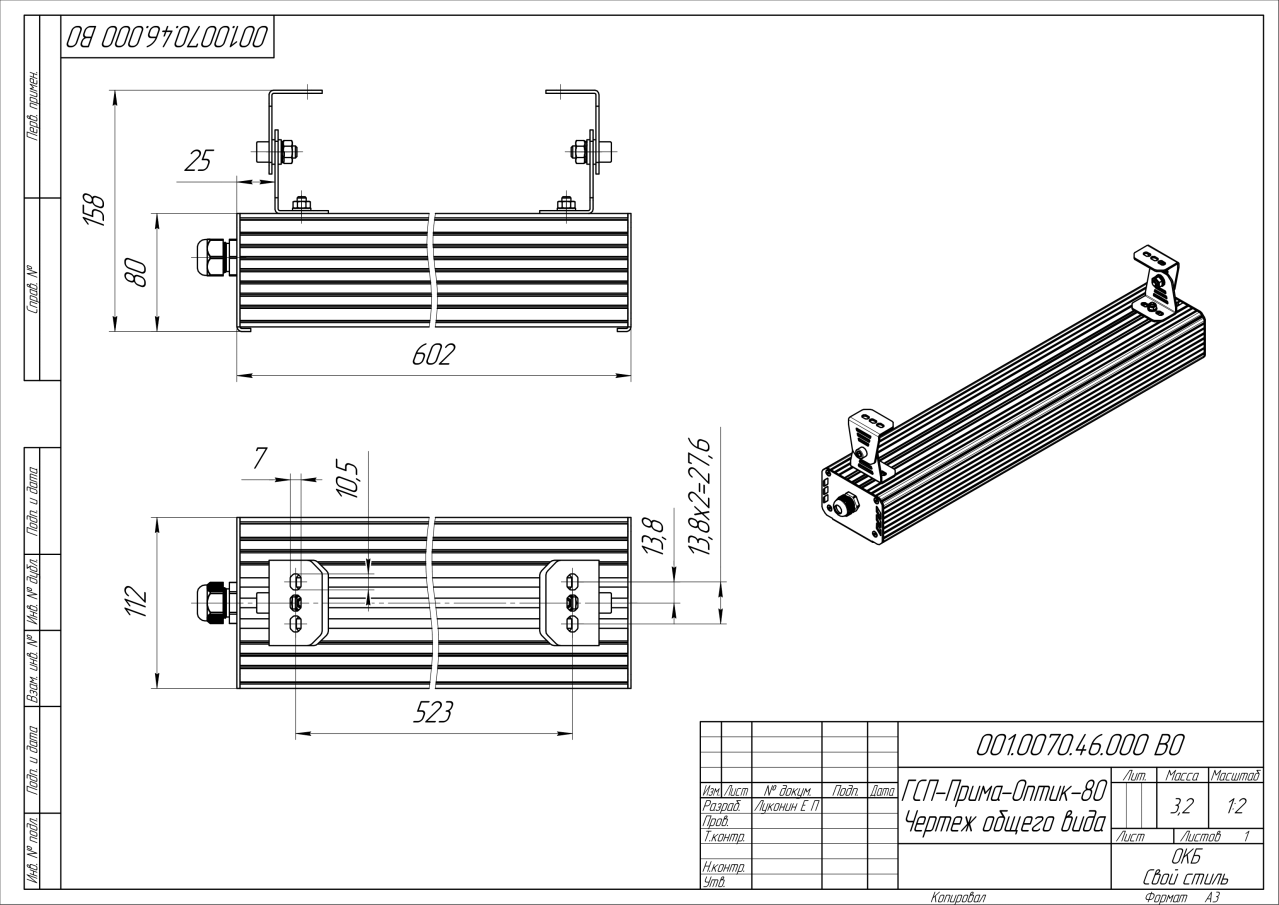 | Габаритные размеры (ДxШxВ), мм | 602x112x80 |