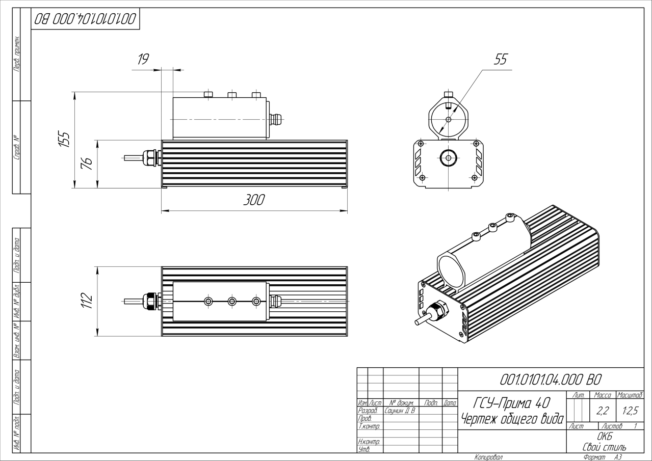 | Габаритные размеры (ДxШxВ), мм | 302x112x80 |