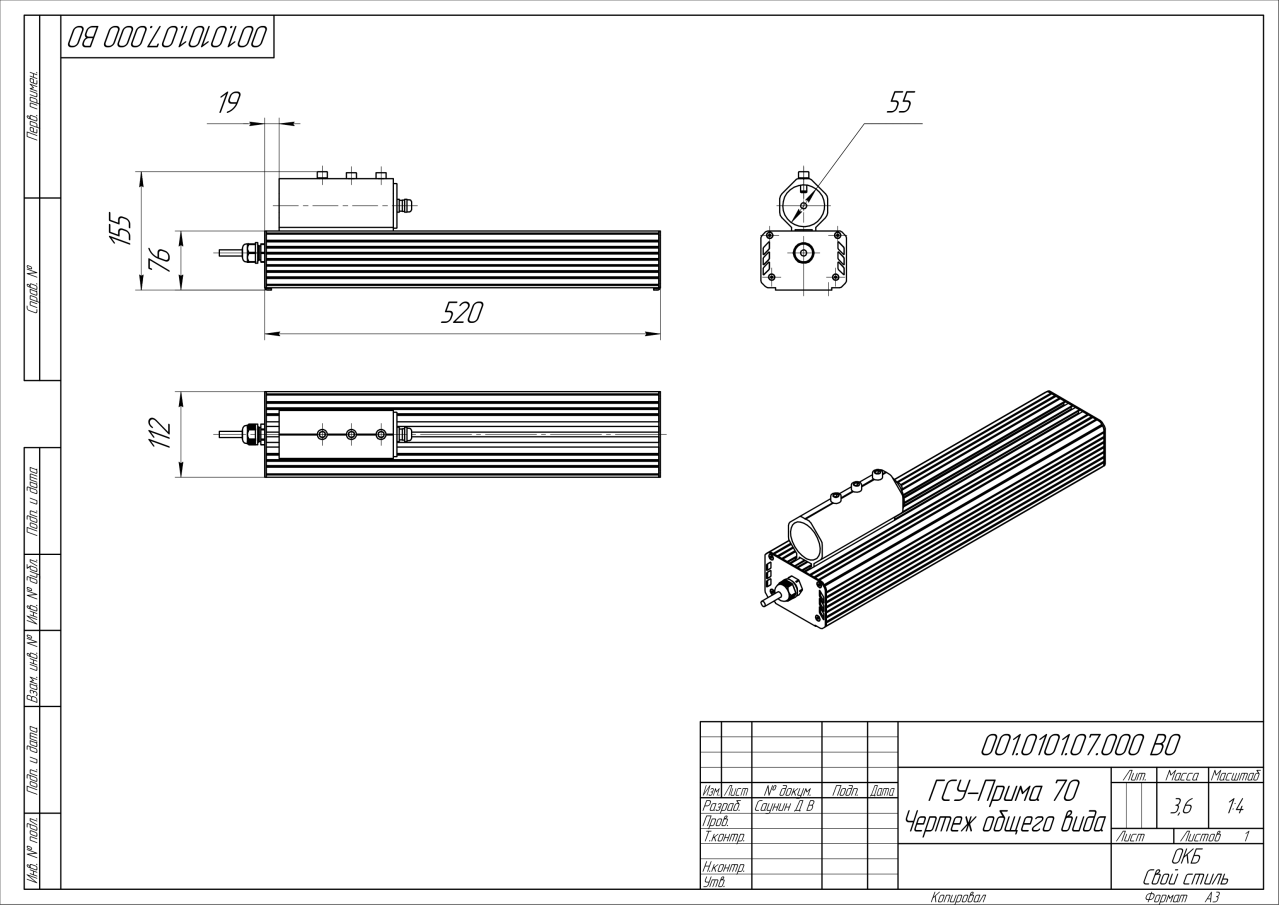 | Габаритные размеры (ДxШxВ), мм | 522х112х80 |