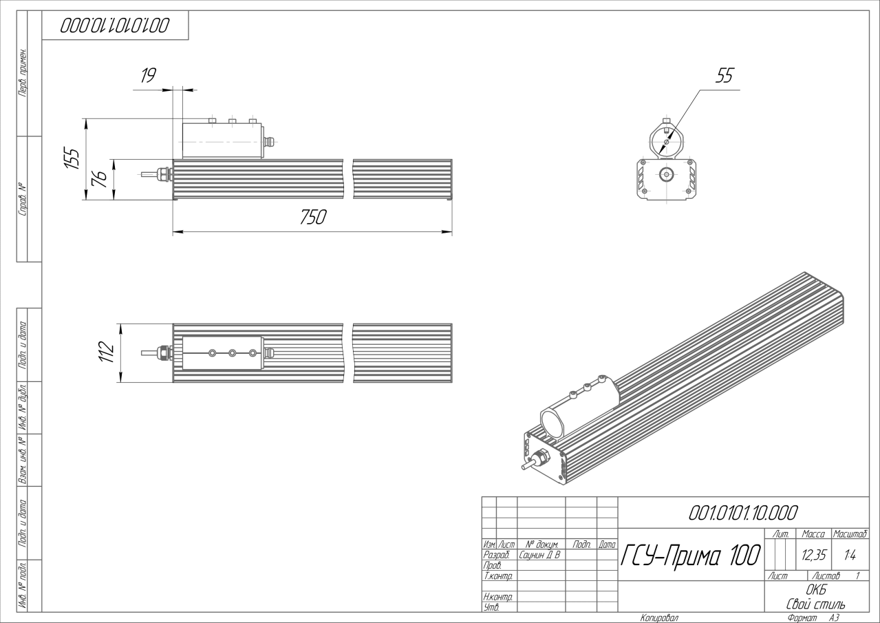 | Габаритные размеры (ДxШxВ), мм | 752x112x80 |