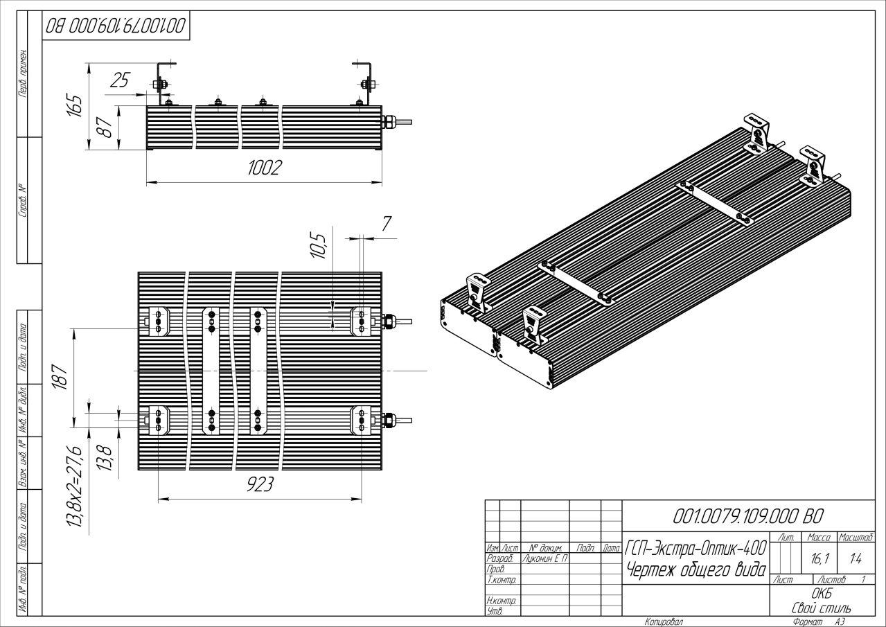 | Габаритные размеры (ДxШxВ), мм | 1002x396x87 |
