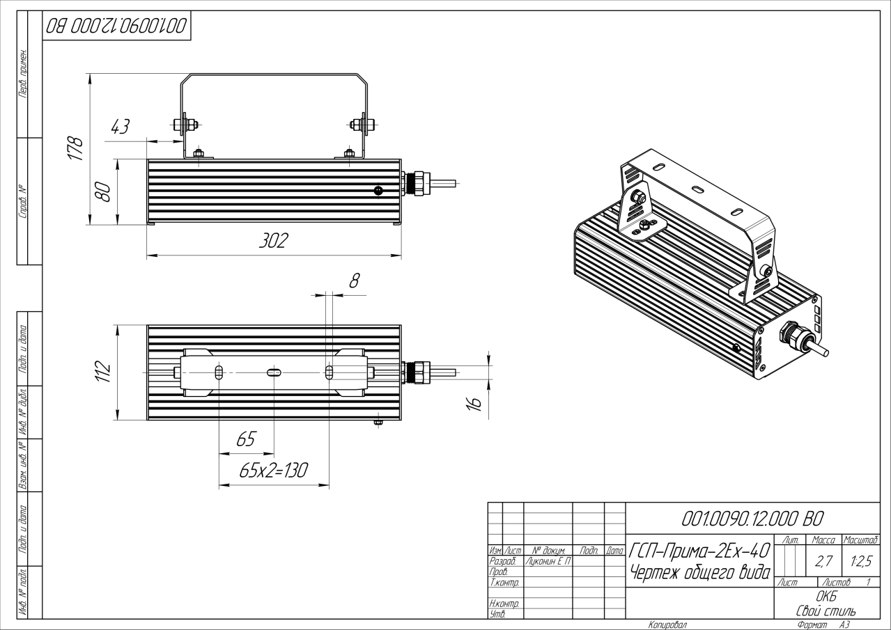 | Габаритные размеры (ДxШxВ), мм | 302x112x80 |