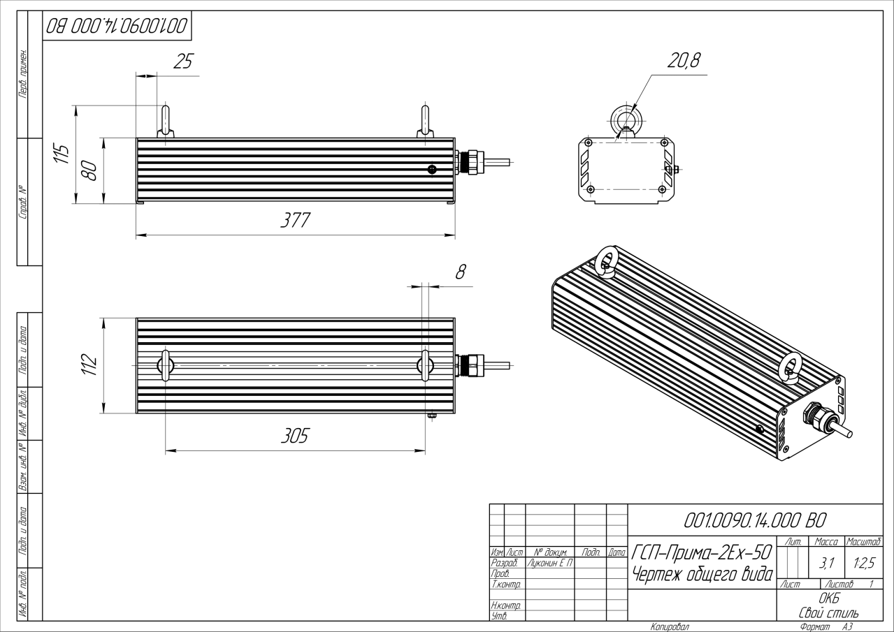 | Габаритные размеры (ДxШxВ), мм | 377x112x80 |