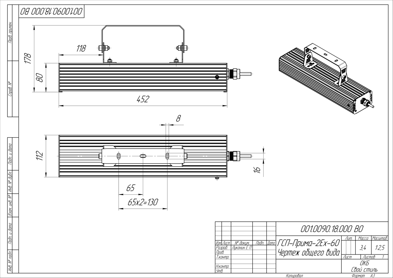 | Габаритные размеры (ДxШxВ), мм | 452x112x80 |