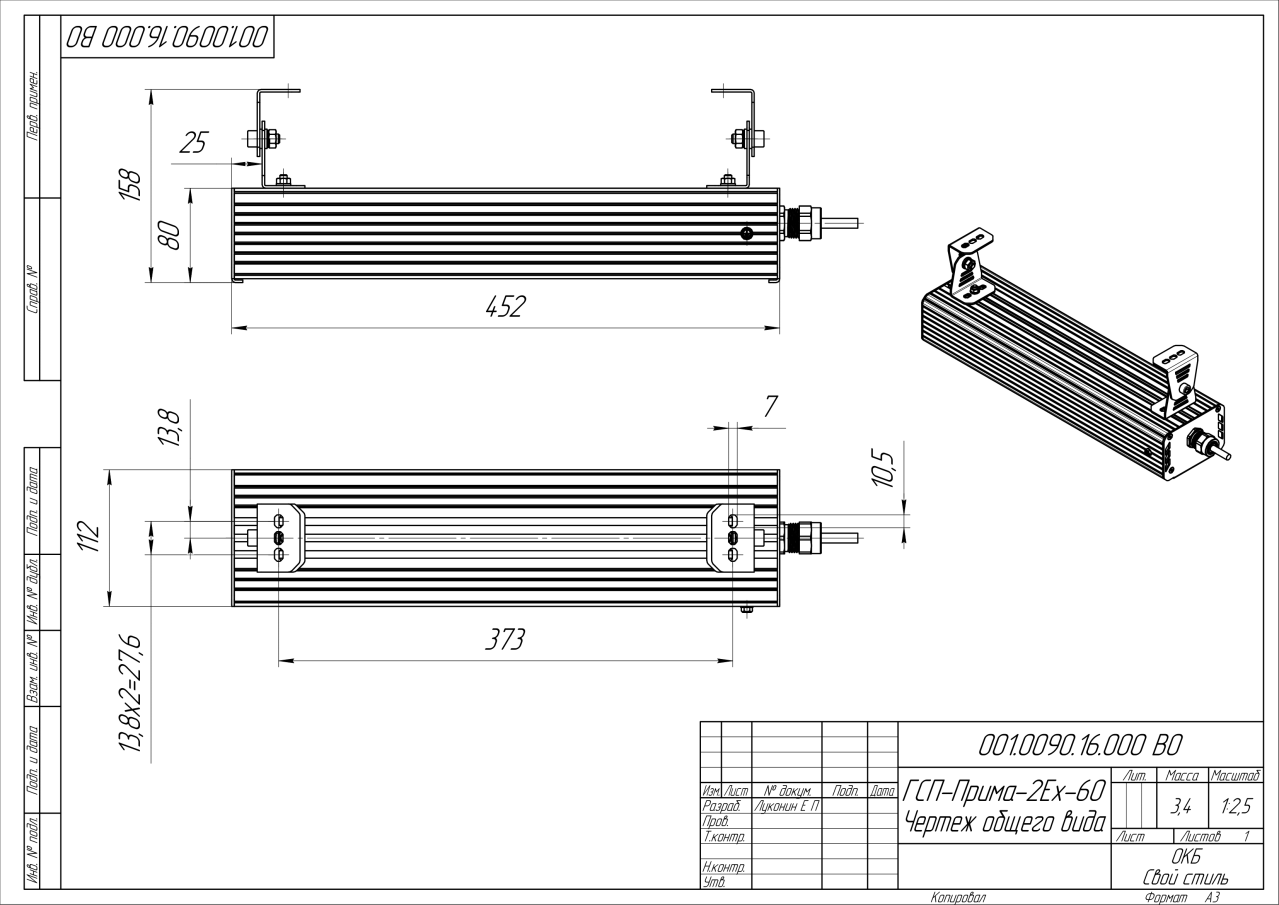 | Габаритные размеры (ДxШxВ), мм | 452x112x80 |
